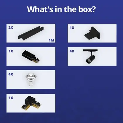 | Manufacturer Name | Complete L shaped 1-Phase Track Set Black incl. 4x Spot fixture + GU10 2700K 3W Dim – 1 x 1 meter i | |