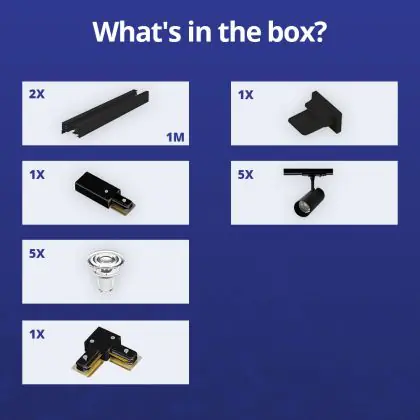 | Manufacturer Name | Complete L shaped 1-Phase Track Set Black incl. 5x Spot fixture + GU10 2700K 3W Dim – 1 x 1 meter i | |