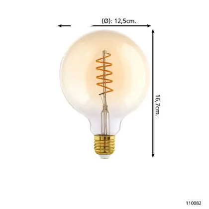 Eglo LED Globe E27 Filament Amber 4W 245lm - 820 Extra Warm White | Dimmable - Replaces 25W