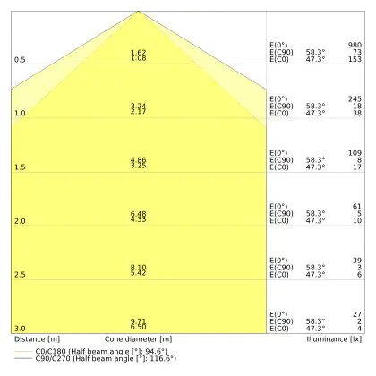 The colour code is a combination of colour rendering (CRI) and light colour (Kelvin). The first number indicates the colour rendering (1 = very poor colour rendering, 9 = maximum colour fastness). The second and third number contains the light colour. Example: the colour code 830 consists of good colour rendering (8) and warm white light (3000K). |