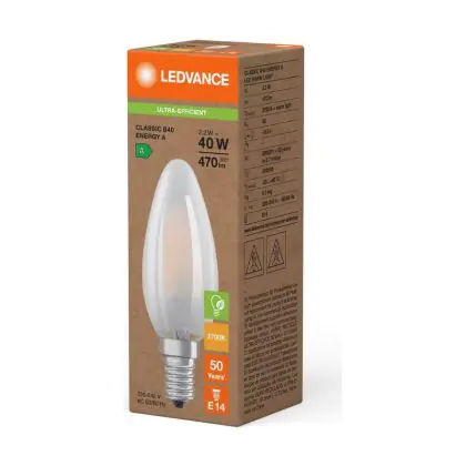 Ledvance LED Classic E14 Candle Filament Frosted 2.2W 470lm - 827 Extra Warm White | Replaces 40W