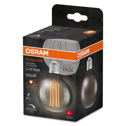 Ledvance Vintage 1906 LED E27 Globe Smoke 11W 500lm - 818 Extra Warm White | Dimmable - Replaces 42W