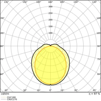 The Luminous Efficacy (lm/W) indicates how efficiently a light source uses energy. We divide the number of lumens by the wattage. The higher the number, the more efficient a product is in terms of energy consumption. LED lighting has a considerably higher lumen/Watt ratio than conventional lighting.