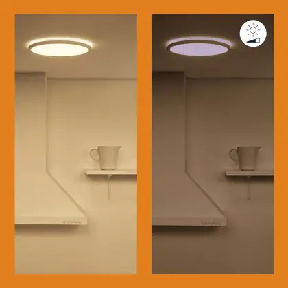4. Dim to warm: Dimming makes the light warmer (more yellow). The more you dim, the warmer the colour.